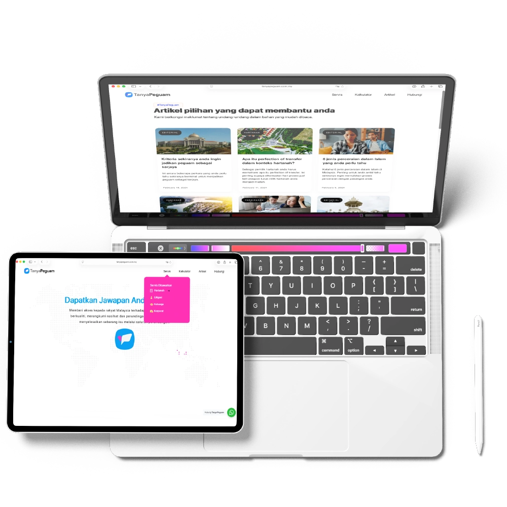 Kami mereka dan membangunkan laman web TanyaPeguam dari kosong, bermula dengan pemahaman terhadap objektif jenama: menjadikan khidmat nasihat guaman lebih mudah diakses oleh rakyat Malaysia.
